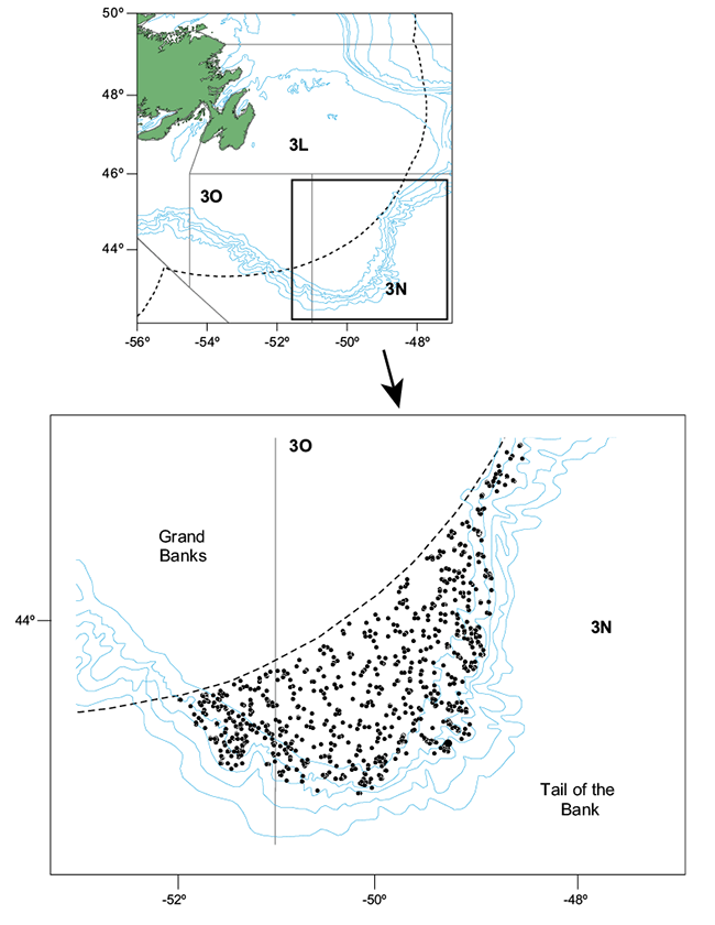 With the extension of deep-sea fisheries, there has been increased interest in the ecology of deep-sea species (Priede et al., 2010). Previous studies have examined the fish assemblages on the Grand Banks. These studies, however, covered limited depths (Gomes et al., 1992), were spatially limited (Snelgrove and Haedrich, 1985), or used sampling techniques that limit the biodiversity of the catch (e.g., long-lining (Murua and Cárdenas, 2005)). Moreover, they are not current (Gomes et al., 1992) and, therefore, unable to detect potential temporal changes in assemblage structure in recent years.
