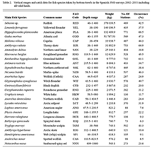Along with this we also observed that some species, as American plaice, considered strictly shallow, showed a large range of occurrence. The same case was observed by Iglesias et al. (1996) with information of catches in 1991 and during the second half of 1990 as well as in years 1992 and 1993 collected by observers on board the Spanish trawl fleet in Divs. 3LNM from the Regulatory Area of NAFO. American plaice presented a record occurrence in depths greater than the limits observed in the literature (deepest occurrence at over 1400 m).