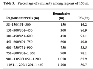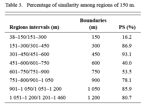 Percentage similarities for each depth boundary were given in Table 3. All PS boundaries values were higher than 50% except 150 m and 600 m. These results suggested weak zonation at these boundaries.
