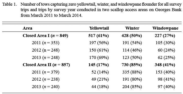 The results of our three-year dredge survey revealed considerable spatiotemporal variation in flatfish bycatch both within and between two scallop access areas on Georges Bank. By frequently sampling Closed Areas I and II over an extended period of time, we were able to document localized, seasonal shifts in the bycatch rates of three flatfish species. Our results suggest consistent seasonal patterns in flatfish bycatch that may help managers identify the optimal times to open the access areas to the scallop fleet in order to reduce bycatch of yellowtail, winter, and windowpane flounder.