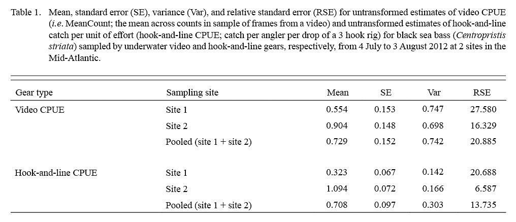 Cullen, D.W. and Stevens, B.G. 2020. A brief examination of underwater video and hook-and-line gears for sampling black sea bass (Centropristis striata) simultaneously at 2 Mid-Atlantic sites off the Maryland coast. J. Northw. Atl. Fish. Sci., 51: 1–13. https://doi.org/10.2960/J.v51.m725
