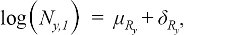 where μ R y=μ R 1for y < 1993 and μ R y=μ R 2for y ≥ 1993, and the two mean recruitment parameters μ R 1, μ R 2 ∈ (− ∞, ∞) account for the large differences in recruitment between the two time periods and are fixed effect parameters to be estimated. The deviations from the mean recruitment δ R y are assumed to follow a normal distribution with AR(1) correlation across years, with the AR parameters σ 2 R and ϕ R to be estimated across the entire time series, as we expect recruitment to be more alike in years that are closer together.