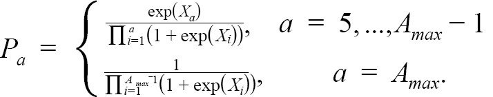 where A max is the plus group. Recall that there is no catch data for ages 1–4. The inverse transformation of (1.4) is: