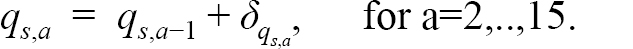 1) q age-aggregating: for each age 5,..,14 fix survey δ + q s,a = 0 for all subsequent ages (e.g. q5+ is one run with δ + q s,a fixed at 0 for ages 6+). q age-aggregating selected from run with lowest BIC1.